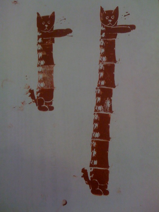 […] printing with stencils. My inability to draw stopped my stuff being of any artistic merit (I make a long cat lino cut you can see […]